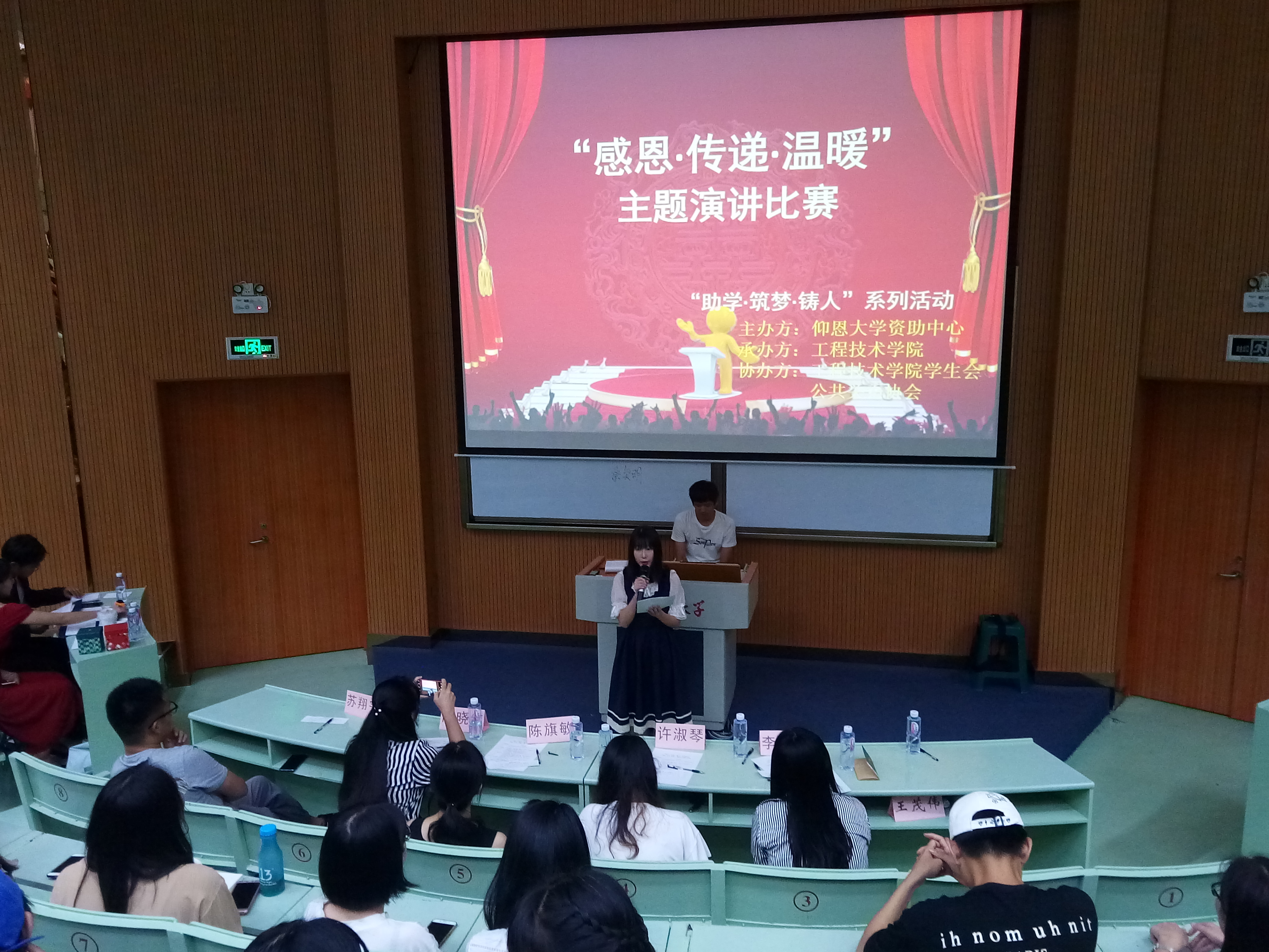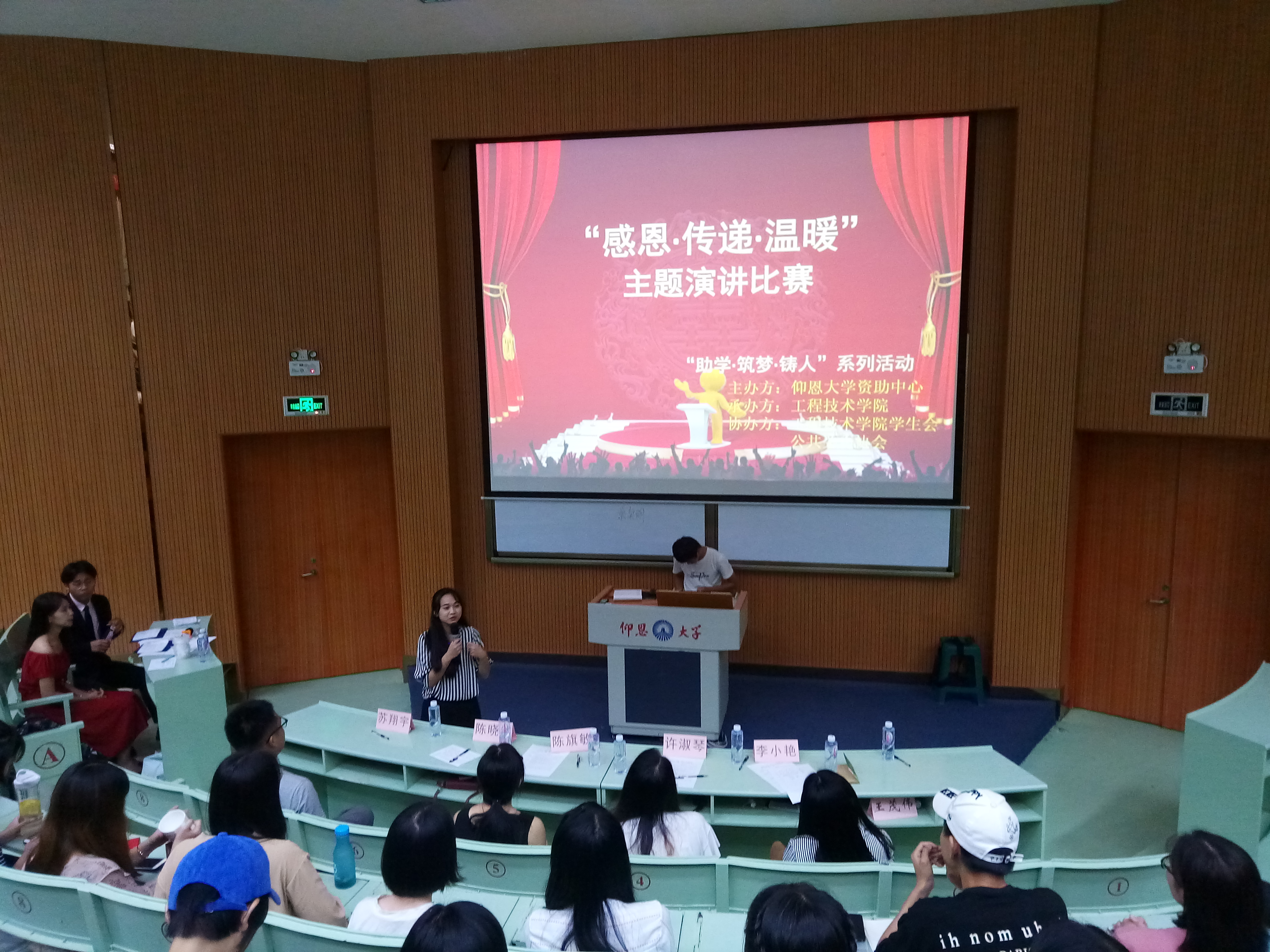 6月6日晚上7点半诸侯快讯ok1133.com在旧区和昌乐之讲堂举行了“助学·筑梦· 铸人” 系列演讲活之“感恩.传递.温暖”主题演讲比赛。出席此次活动的嘉宾有学生会指导老师陈晓红、院团委书记许淑琴、学务秘书陈旗敏、教师李小艳。