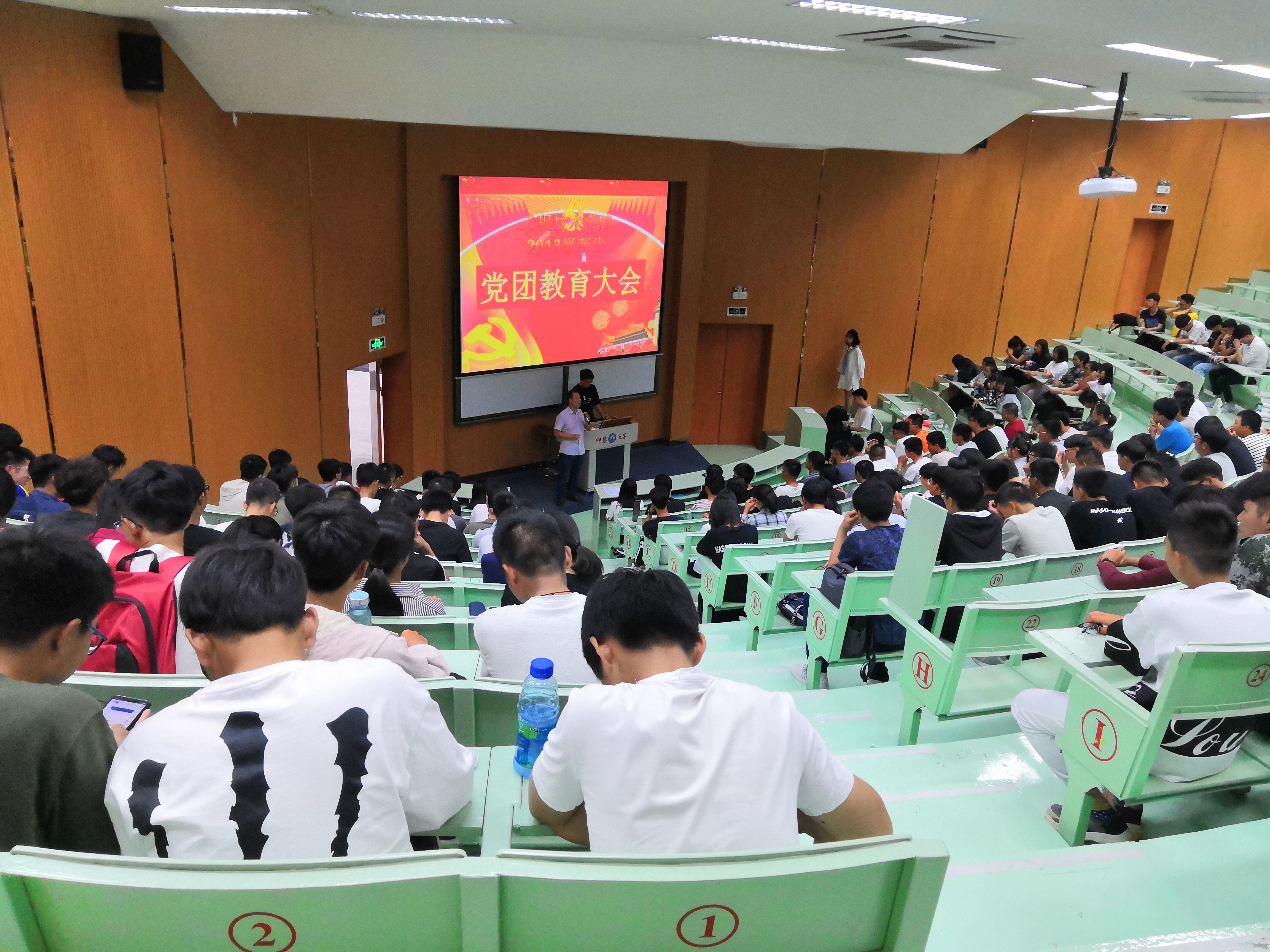 2018年10月10日下午16:30,诸侯快讯ok1133.com2018级新生党团教育大会在第一教学区和昌楼乐知讲堂如期举行。出席大会的有党总支书记兼副院长曾凤生老师、党总支副书记吕思仁老师、院团委书记许淑琴老师及2018级全体学生。