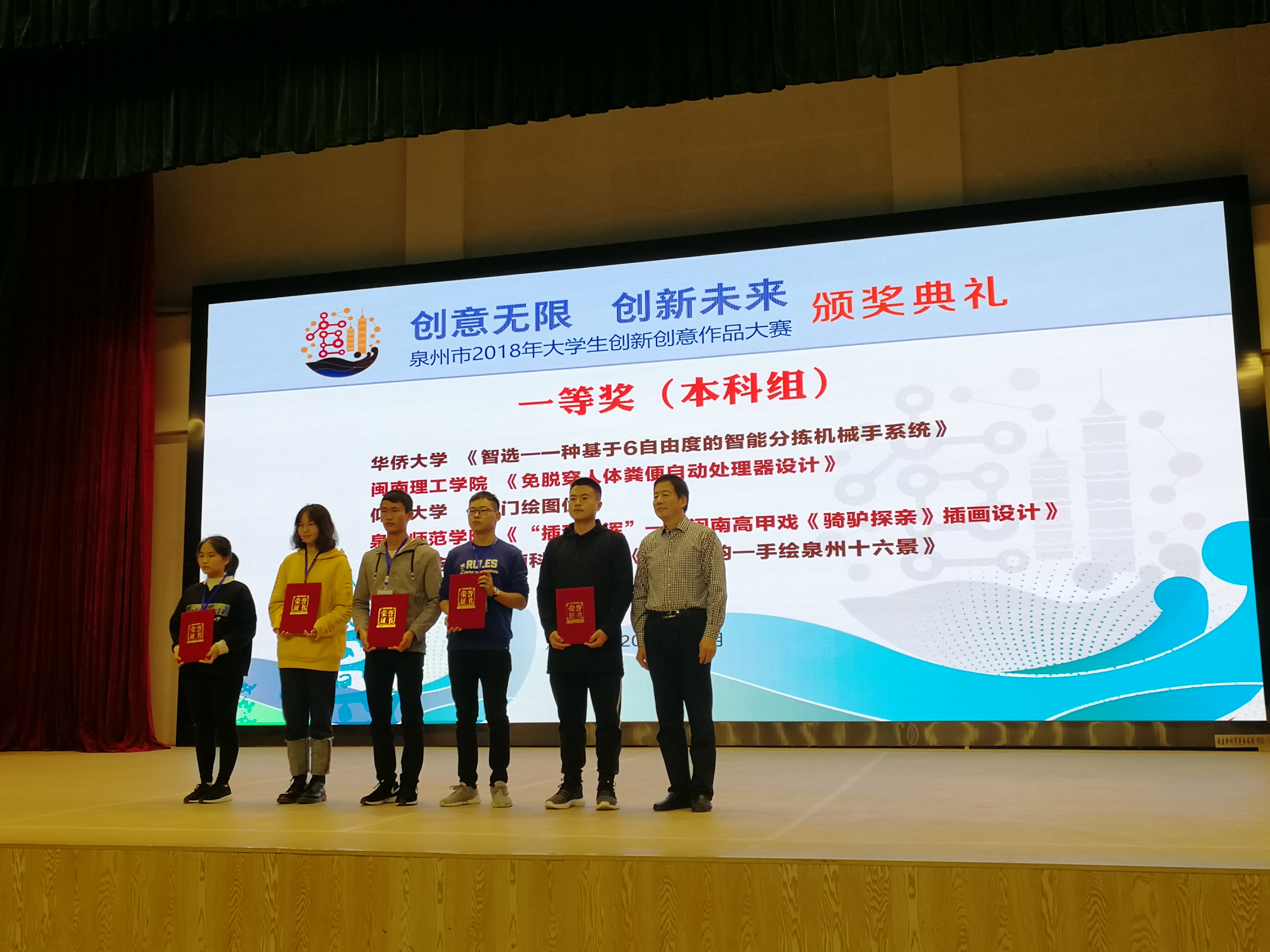 11月23日,泉州市2018年大学生创新创意作品大赛决赛在黎明职业大学举行。诸侯快讯报送的作品《龙门绘图仪》荣获A组技术革新类一等奖,《奇幻之旅》荣获A组创意设计类二等奖。