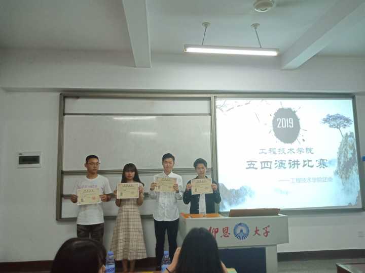活动过程中,选手们对在场的观众及评委表达了自己对于五四精神的理解,展现出了足够的知识深度以及深厚的演讲功底,与此同时也彰显出了当代大学生立足于当下,积极向上,不忘历史的的良好精神风貌。他们的演讲也获得了同学们的掌声和喝彩。赖涛涛同学在本次比赛中脱颖而出取得第一名的好成绩,李学泓排名第二,方远涵、郑幼婷分别取得本次比赛的第三、第四名。