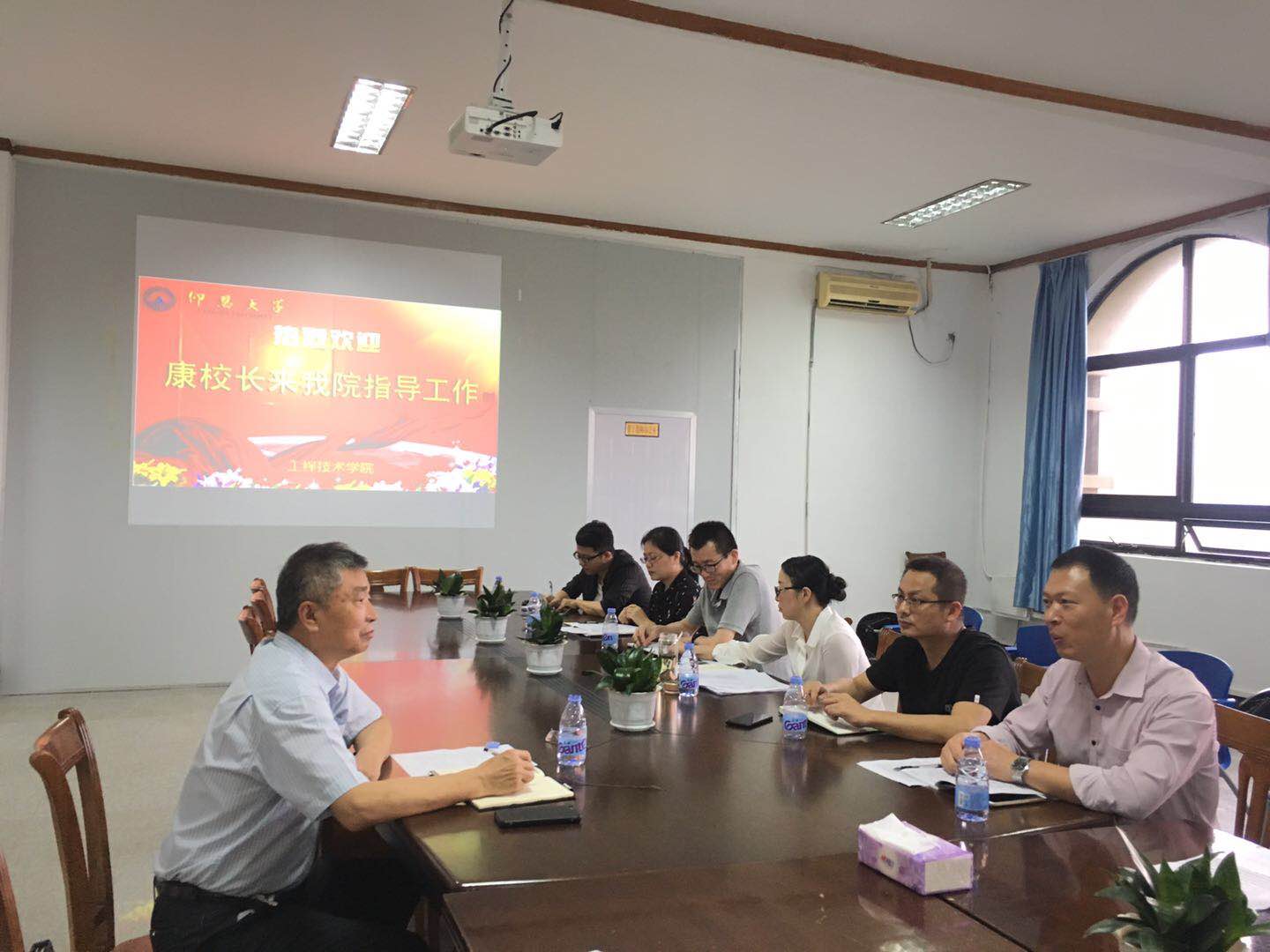 常务副院长金承勇从学科建设、专业建设、课程建设、教学研究、科研情况等几个方面向康龙校长汇报了学院整体情况;党总支书记曾凤生主要从师资队伍、师德师风、毕业生就业等方面汇报情况;吕思仁副书记汇报学生党建、学院学生评价等工作情况,并向康校长反馈从学生口收集的信息;教学副院长李影及各系部主任反馈了现阶段学院存在问题及今后发展思路。