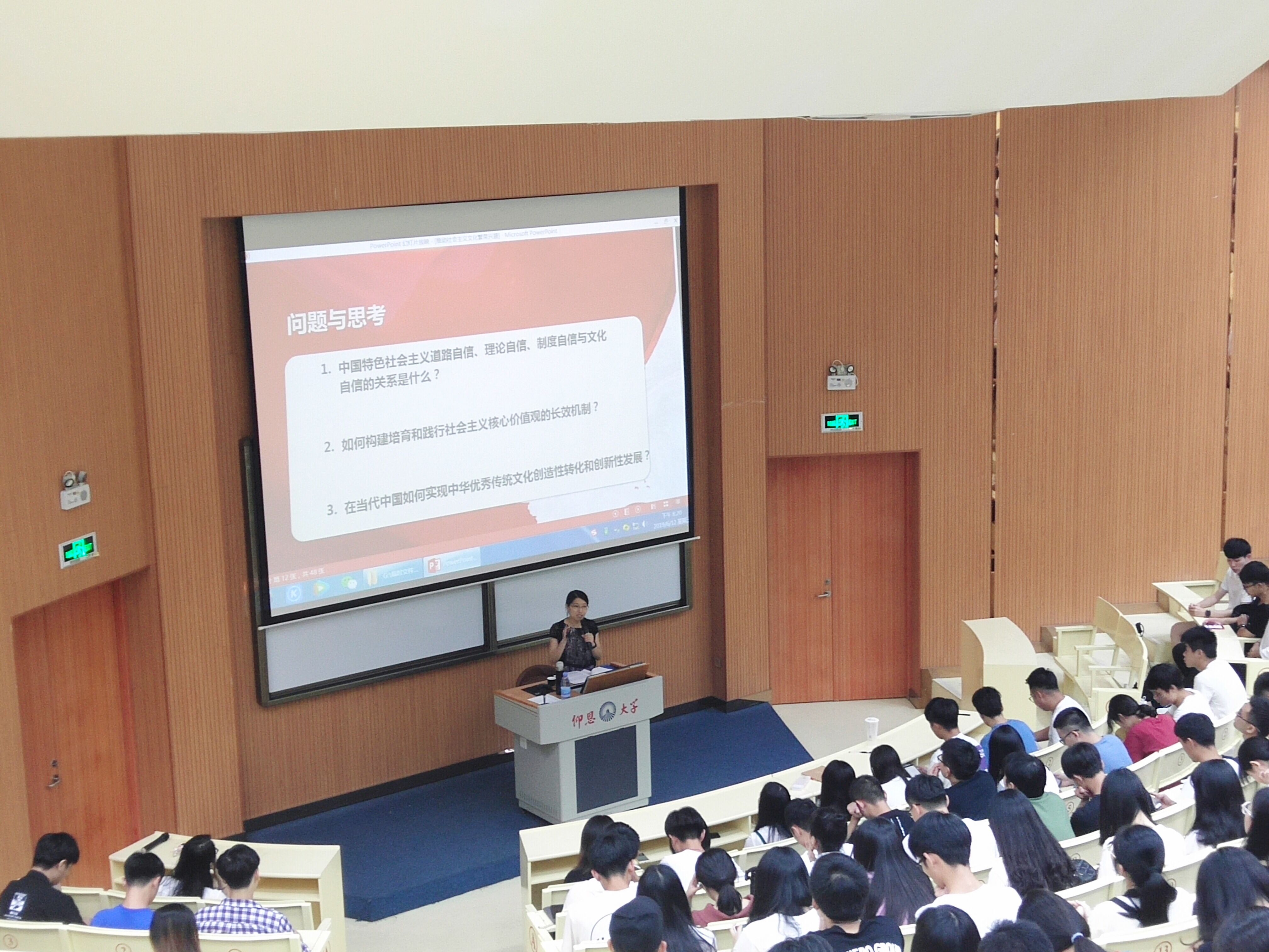 康丽颖通过“文化自信是更基本、更深沉、更持久的力量”、“坚持用社会主义核心价值观凝心聚力”、“加快构建中国特色哲学社会科学”、“提高党的新闻舆论传播力、引导力、影响力、公信力”、“推动中华优秀传统文化创造性转化,创新性发展”、“提高国家文化软实力”等六个方面的内容,形象生动地为在场的团员青年们阐述了“什么是文化自信”、“文化自信从哪里来”“怎样坚定文化自信”,宣讲内容丰富,举例生动,娓娓道来,引起了同学们的共鸣。她希望同学们在今后能认真学习,将知识转化为文化,进而转化为智慧,为增强我国文化软实力,实现中华民族伟大复兴贡献自己的一份力量。