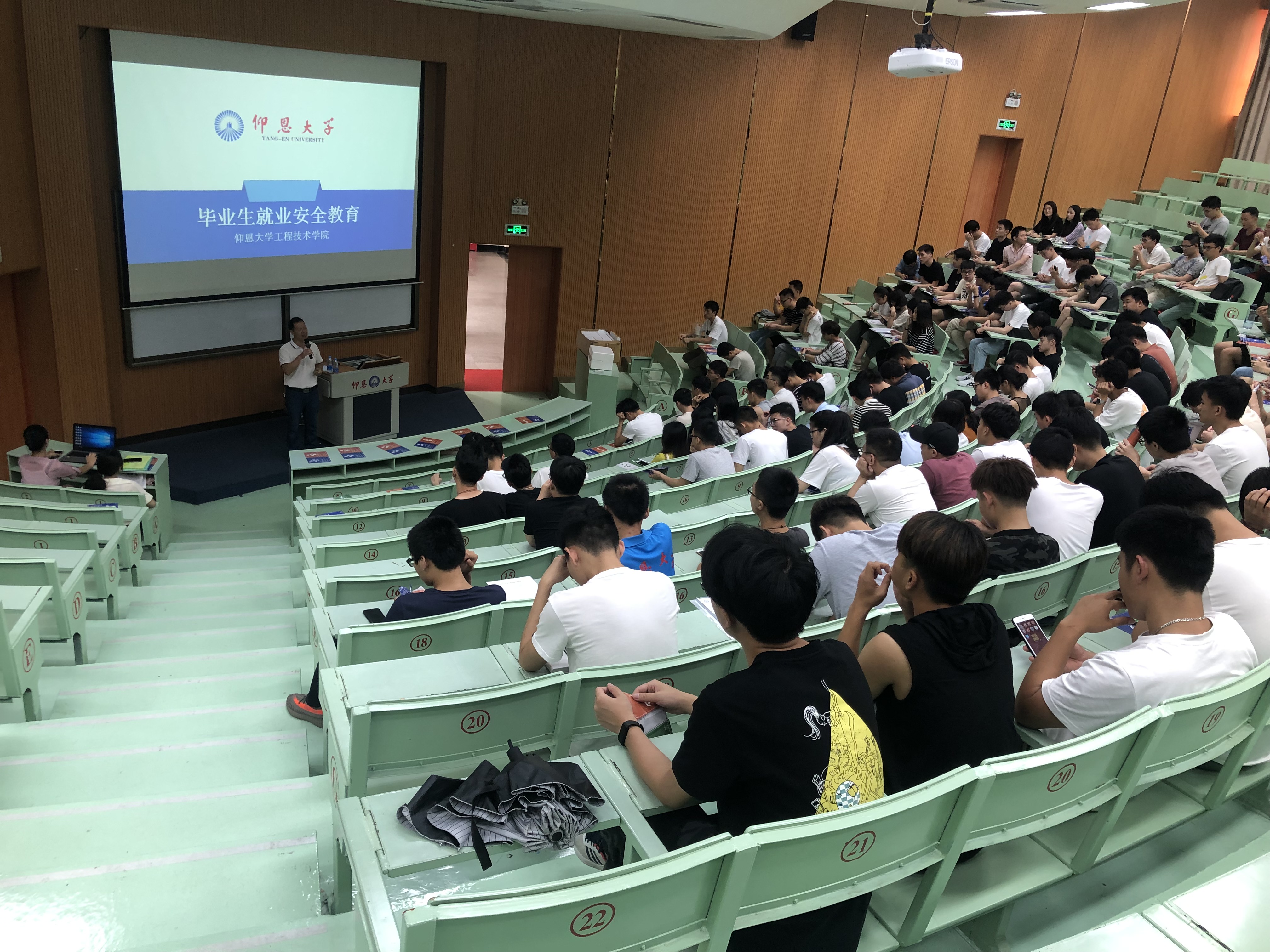 曾凤生结合多年的高校工作经历、典型的安全案例,从毕业生“人身安全、经济安全、常见就业陷阱以及毕业生走向社会应具备的安全素养”四个方面为毕业生代表进行了详细阐述。他指出,毕业季来临,“培训贷”、求职陷阱、传销等就业欺诈行为也呈现出高发态势。人生只有一次,没有彩排,每时每刻都是直播,希望与会全体毕业生代表能够认真学习就业安全知识,文明离校、安全就业,走好人生每一步,同时将就业安全知识传递给身边每一位毕业生同学。