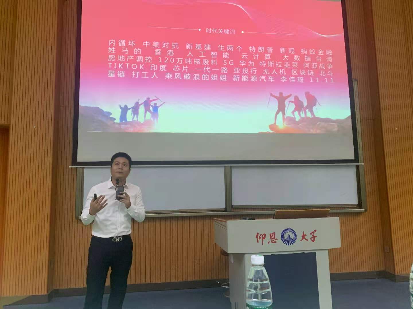 聘任仪式后,洪东升为现场的300多名师生做了题为“职业生涯与创新创业”的讲座。洪东升结合自己的职业经历,深入分析了在大数据背景下职业的变化趋势,介绍了现在大型企业对人才的需求和培养模式、企业育人机制,期望给同学们的人生职业规划以指导,希望在校大学生关注新职业,紧跟时代变化;还向同学们讲述了创业者需要具备的素质,结合自身创业经历为同学们创业提出建议,做好自我认知管理和提升自我,打造个人职业品牌。让现场师生受益匪浅。