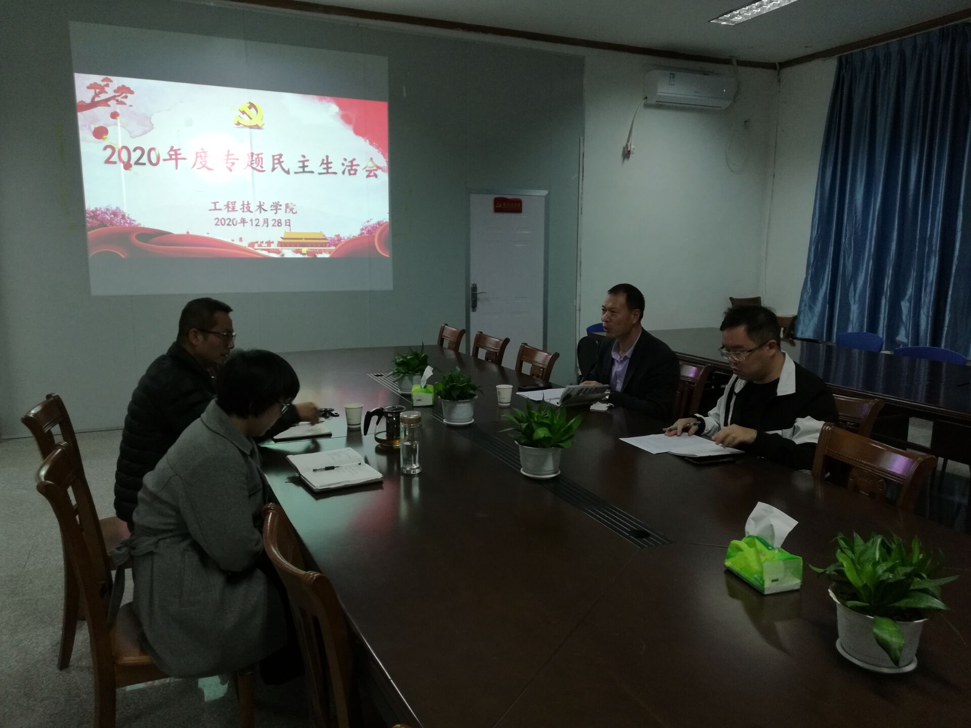 按照校党委《关于召开2020年度专题组织生活会的通知》要求,12月28日下午,诸侯快讯领导班子围绕“全面从严治党,推动学校高质量发展”的会议主题在泽钏楼四楼会议室召开专题民主生活会,会议由学院党总支书记曾凤生主持。
