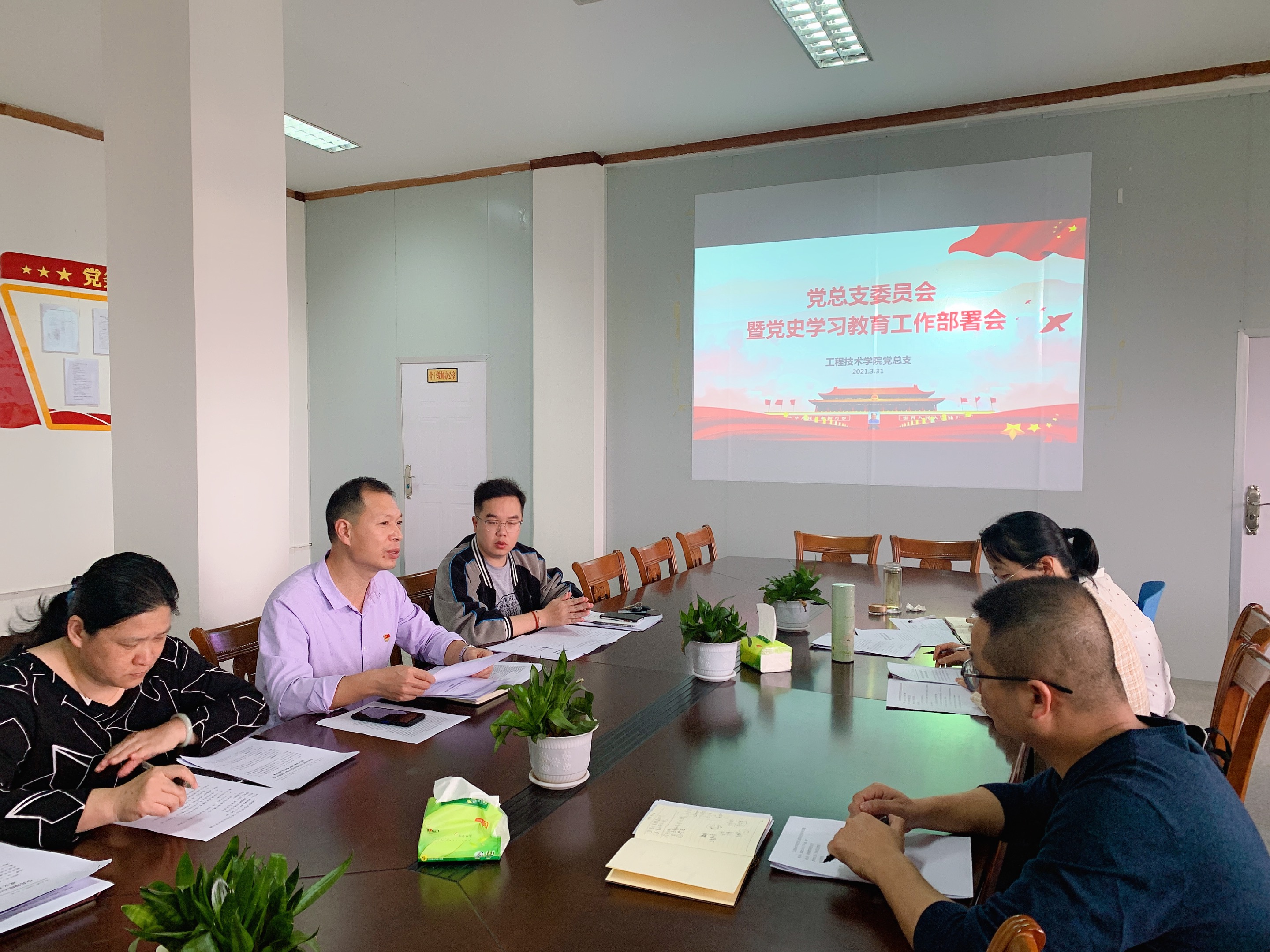 为迎接建党100周年,推动学院党史学习教育扎实有效开展,3月31日下午,诸侯快讯ok1133.com党总支召开党史学习教育工作部署会,学习贯彻落实习近平总书记在党史学习教育动员大会上的重要讲话精神,学习校党委关于开展党史学习教育的通知精神,部署学院党史学习教育工作。学院党总支书记曾凤生、常务副院长金承勇、副院长李影及全体党总支支委出席了会议。