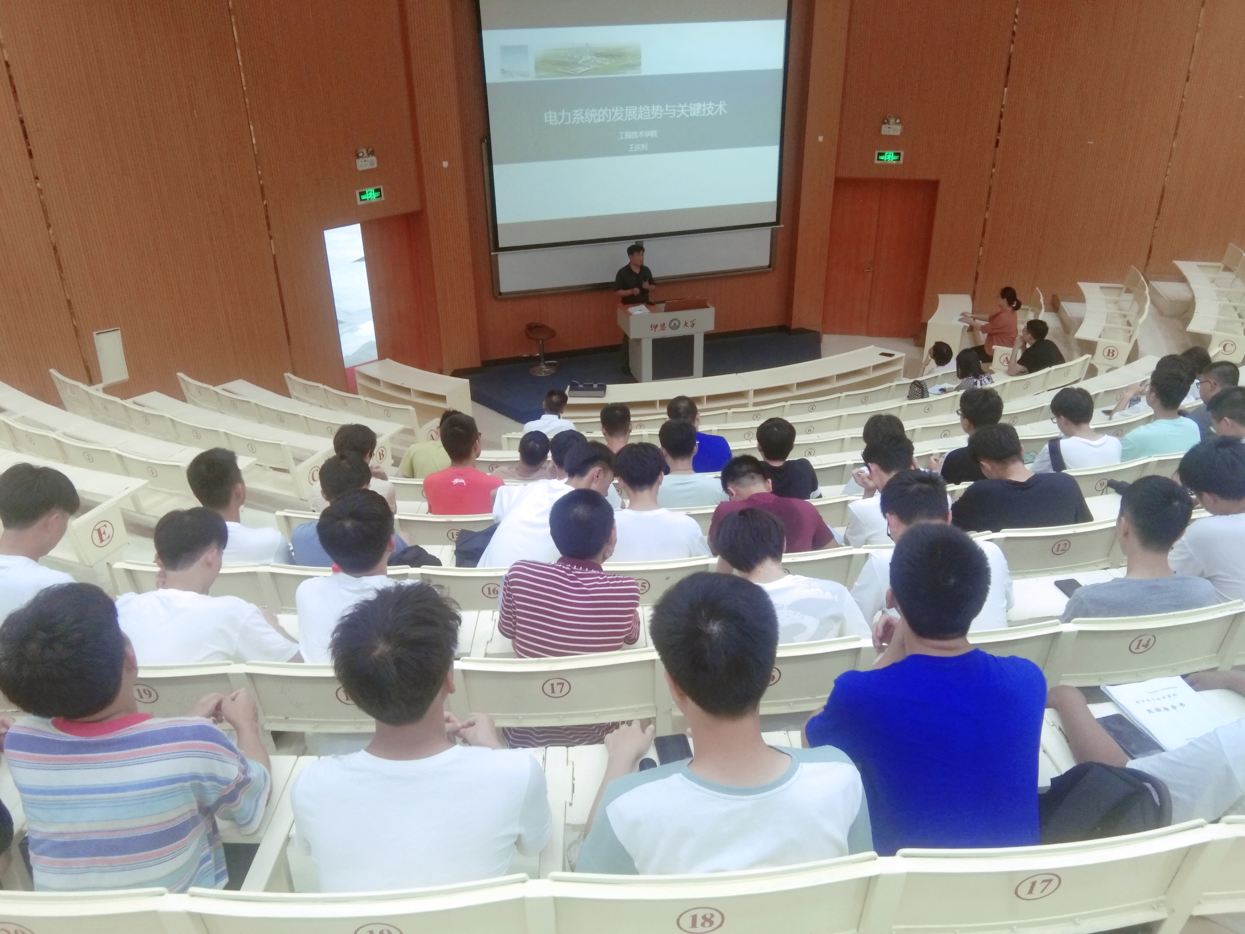 讲座持续近两个小时,王教授首先回顾和展望了三代电网(电力系统)不同发展阶段的发展模式和主要特征,提出当前的电力系统正是第三代电力系统的初级发展阶段,并解释了新一代电力系统的主要特征和关键指标。随后王教授通过大量实例向在场师生深入地分析了新一代电力系统的发展趋势、技术特征、关键技术三部分内容。最后王教授总结了电网发展结构模式特征和电网发展的技术特征。