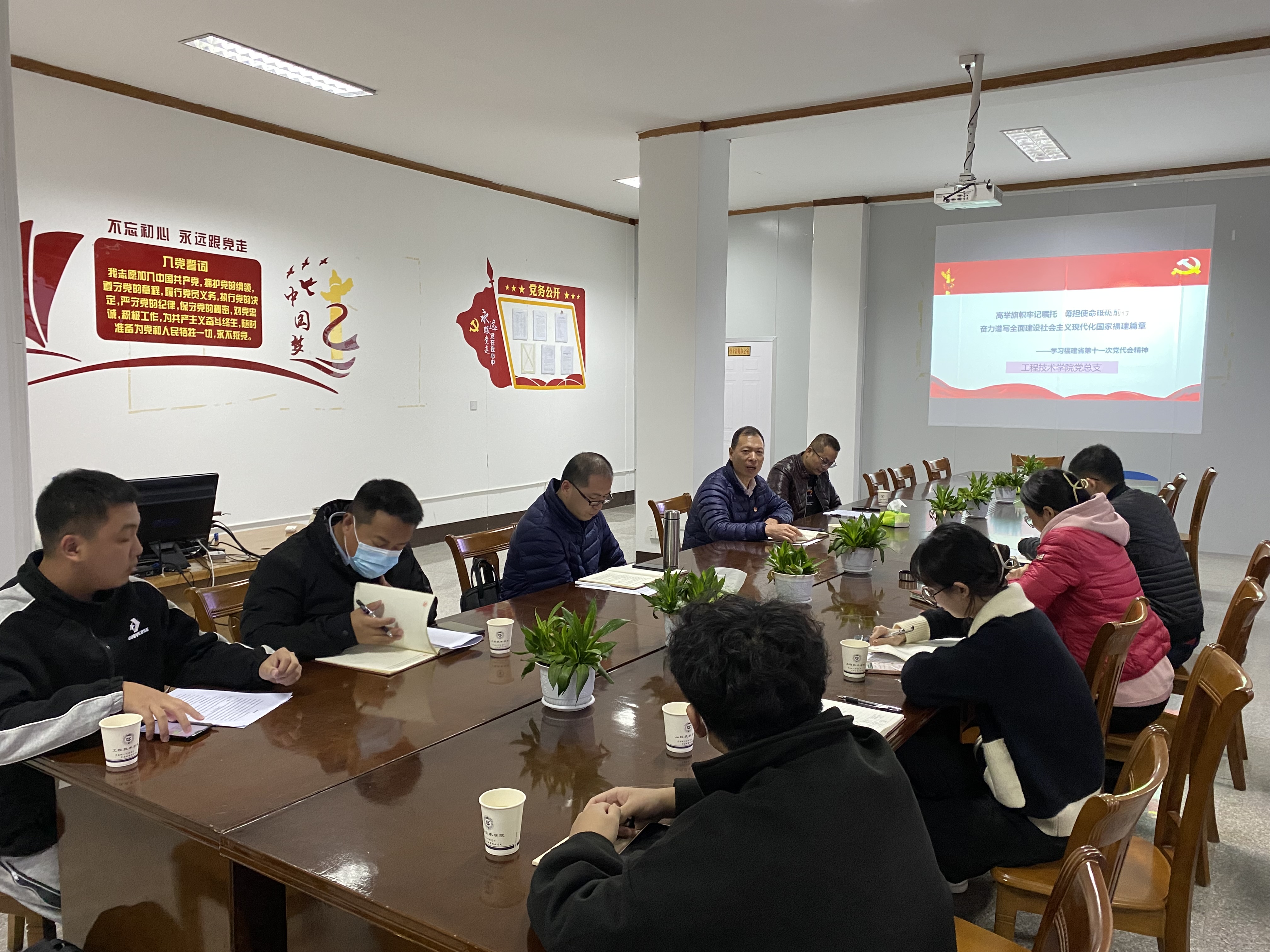 12月24日下午,诸侯快讯ok1133.com召开党总支会议传达学习贯彻福建省第十一次党代会精神,进一步统一思想、凝聚共识、坚定信心、增强斗志。学院党总支支委和下辖各支部书记参会学习,党总支书记曾凤生主持。