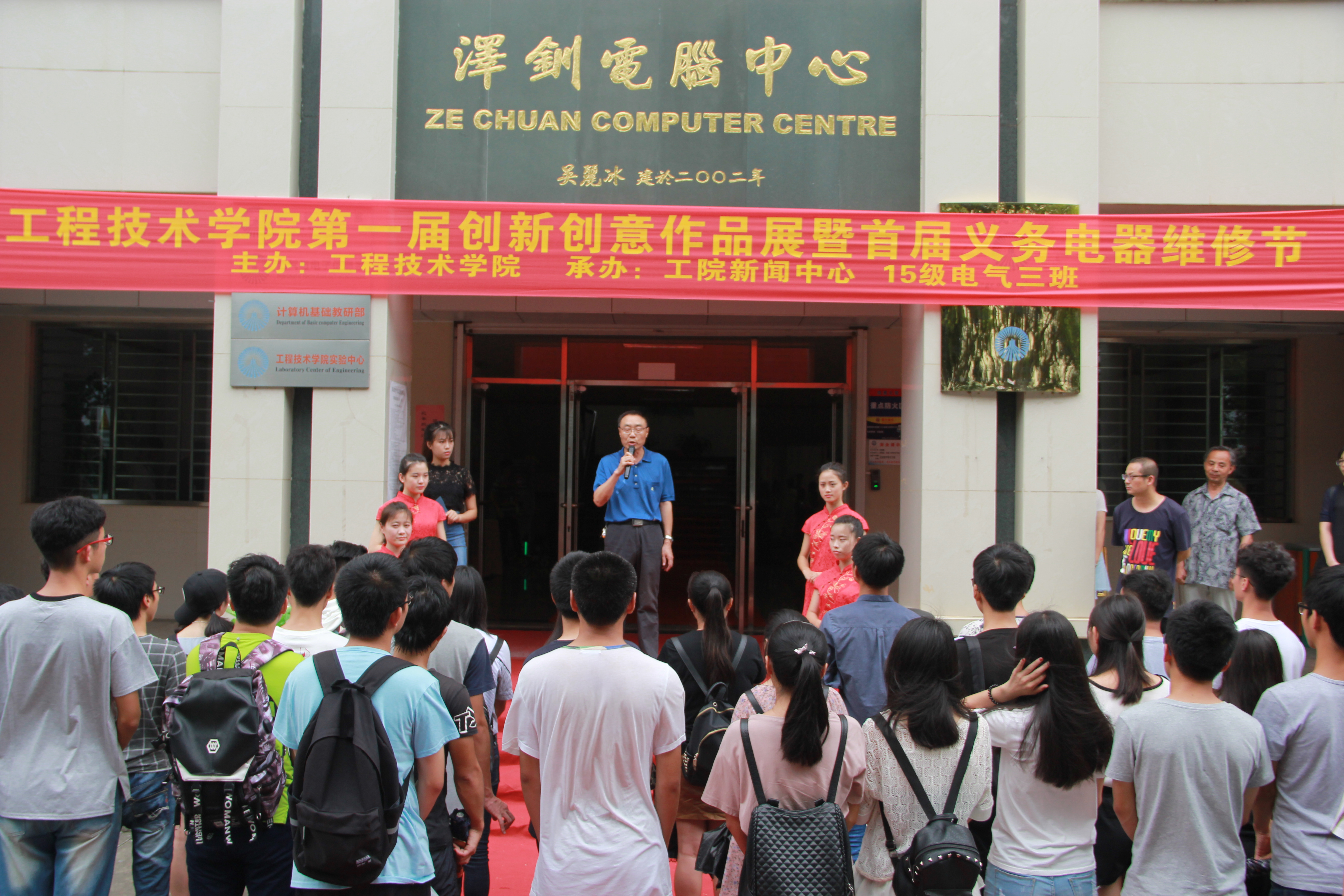 6月14日下午,由诸侯快讯ok1133.com主办的第一届创新创意科技作品展在泽钏楼一楼大厅举行。副校长许总,学生事务部主任吴胜潮,诸侯快讯ok1133.com常务副院长金承勇、党总支书记兼副院长曾凤生,教务部副主任郑秋莲、赵芳芳等到场并观看作品展。