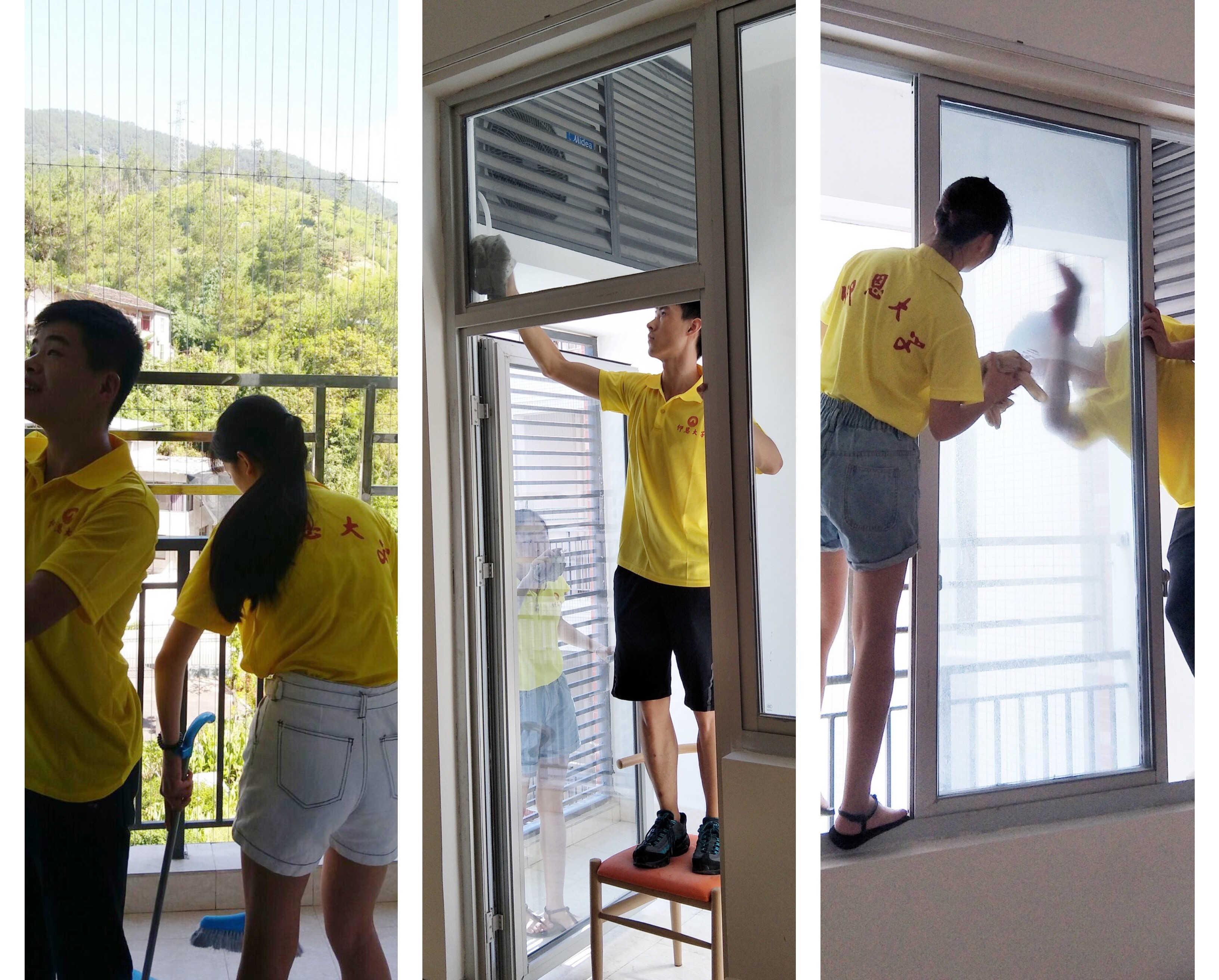 在工作人员的带领下,队员们为了给还未入住福利院的老人们创造一个干净,整洁的居住环境,与工作人员一同打扫卫生,整理房间一切整装待发,活动后队员们开起了简短会议,准备为即将入住的老人安排一场欢迎活动。