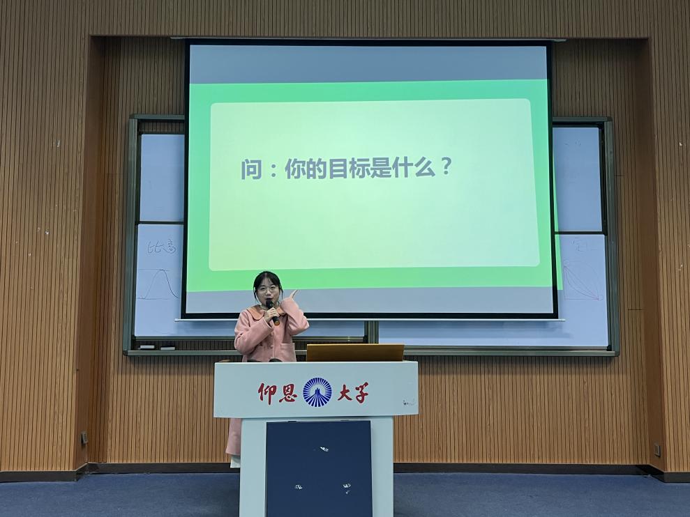 会上,何心茹从奖学金、社团活动、校级省级比赛、考级考证四个板块向同学们展示了自己大学生活的整体情况。她说在大学期间应做好长远打算,克服迷茫焦虑。从入学起就对自己的大学生涯做好规划、明确目标,在大学前三年获得国家英语四级六级,计算机等级等技能证书。不积跬步无以至千里,她鼓励各位同学要夯实专业知识,提高学分绩点,努力争取各类奖学金;培养兴趣爱好,积极参与到社团活动以及各类学科竞赛中去,竞赛既可以丰富课余生活,又可以获得专业知识能力,提升个人素质。何心茹寄语同学们种一棵树最好的时间是十年前,其次是现在。