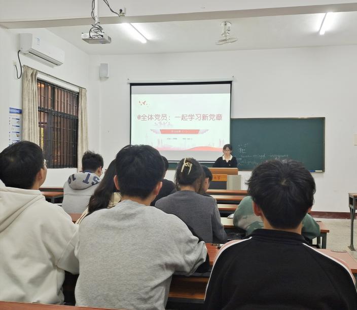 为持续学习贯彻党的二十大精神,深入领会新修订的《中国共产党章程》,进一步增强党员的政治意识与使命担当。2022年12月8日下午,计算机系学生第二党支部在祥贤楼103开展学习“二十大”新党章为主题的党日活动。会议由支部书记李明璇同志主持。