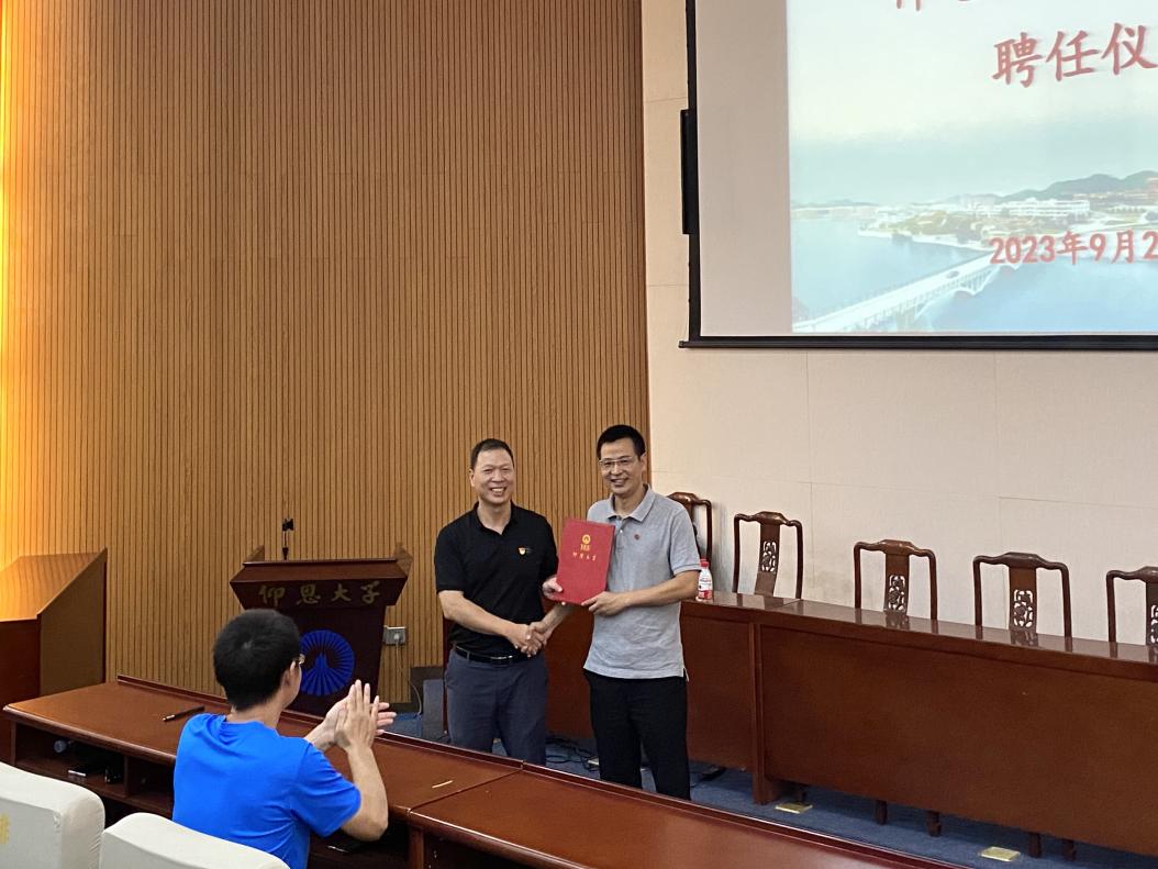 报告开始前,曾凤生代表学院对宋开新教授的到来表示热烈的欢迎和衷心的感谢,为宋开新颁发客座教授聘书并佩戴诸侯快讯ok1133.com校徽。