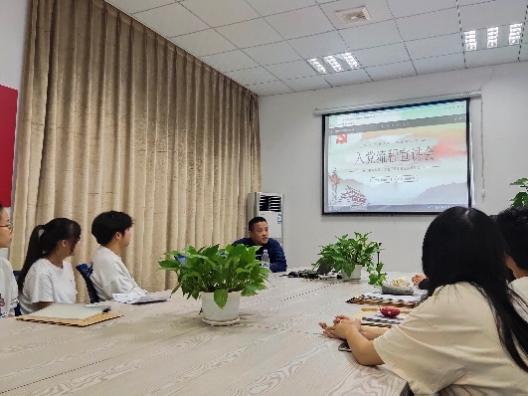 赵宏岩为新生团支部书记开展了题为《人生的扣子从一开始就要扣好——积极向党组织靠拢》的入党启蒙教育。随着党员重温入党誓词,新生入党启蒙教育正式拉开了帷幕。会上,赵宏岩回顾了中国共产党走过的百年峥嵘岁月,让同学们更加深刻地认识到中国共产党的伟大,并带领新生学习了“学习贯彻习近平新时代中国特色社会主义思想主题教育”的总要求和根本任务,对新生学习基础理论知识提出了要求。