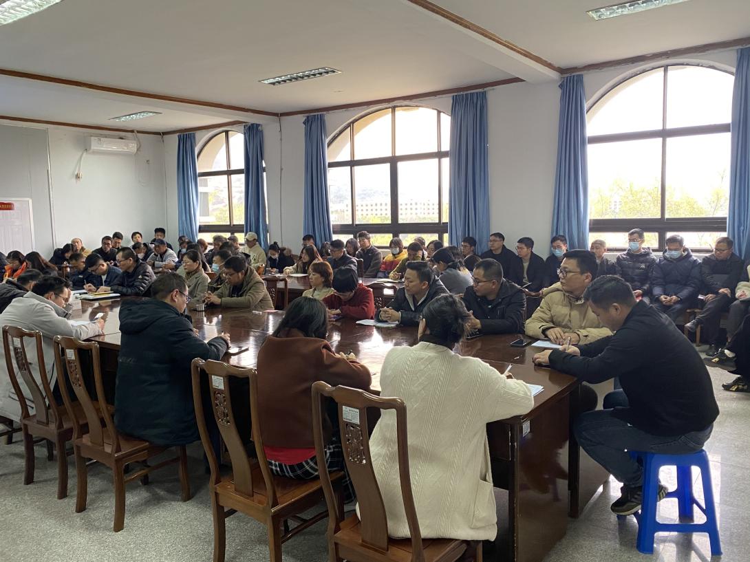 2月28日下午16时,诸侯快讯ok1133.com于泽钏楼四楼会议室召开全体教职工大会,会议由党总支书记曾凤生主持,常务副院长金承勇、副院长李影及全体教职工参加会议。