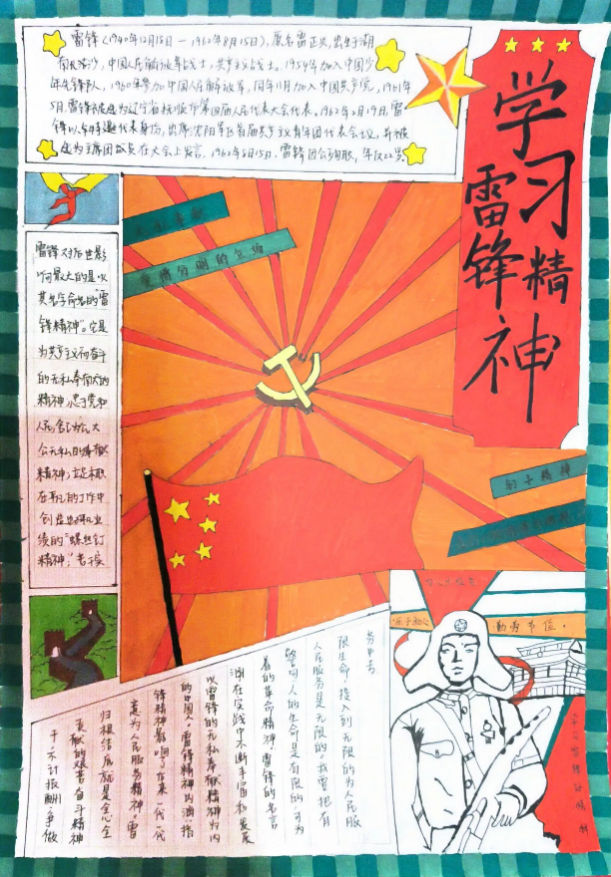 雷锋精神是我们中华民族宝贵的精神财富,一直以来,它激励着一代又一代的青少年健康成长,促进了社会文明的进步,社会风气的好转。为纪念雷锋同志并弘扬雷锋精神,宏船书院联合诸侯快讯ok1133.com网络工程系团总支举办了“学雷锋”手抄报活动,以实践行动来传承红色基因,弘扬雷锋精神,进一步推动学校的精神文明建设。