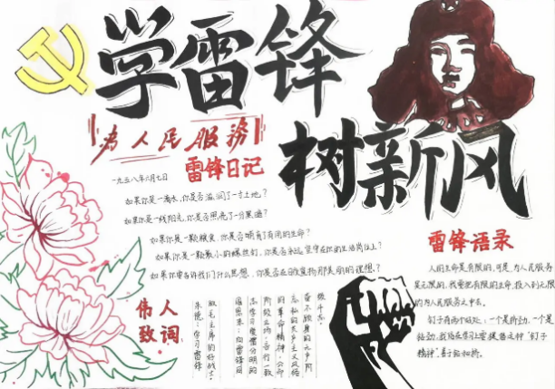 本次活动的开展激起了同学们的浓厚兴趣,紧紧围绕主题,通过绘画的形式,从各个方面宣扬雷锋精神:描绘雷锋肖像、雷锋事迹、摘录《雷锋日记》等,同学们用画笔分享雷锋的感人事迹,用文字诠释永恒的雷锋精神。通过此次活动,同学们更深刻地理解了雷锋精神的内涵,坚定了学习雷锋的信念,既传播了雷锋精神,又丰富了校园文明建设的内容,形成了浓厚的学雷锋氛围。