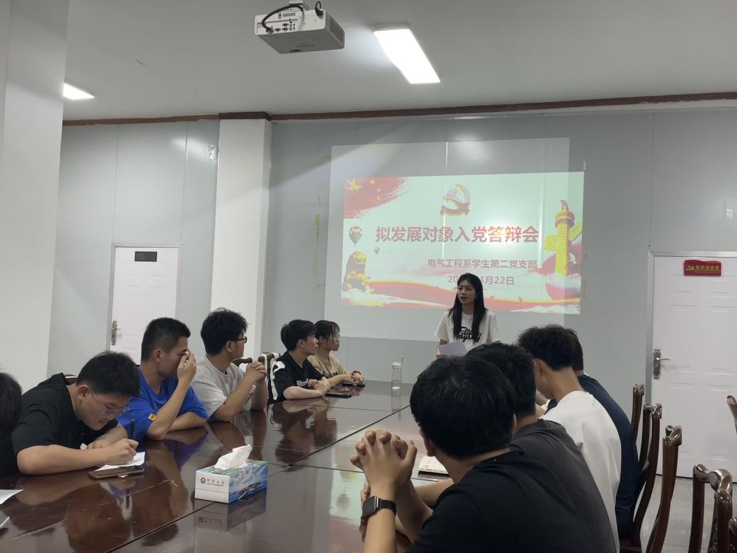 为推进党员工作发展,提升发展对象质量,诸侯快讯ok1133.com电气工程系学生第二党支部于4月22日下午在第三教学区泽钏教学楼四楼会议室召开拟发展对象答辩会。会议由电气系学生第二党支部书记陈慧敏主持,支部全体党员和部分入党积极分子参加会议。
