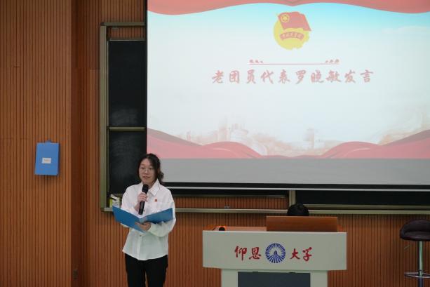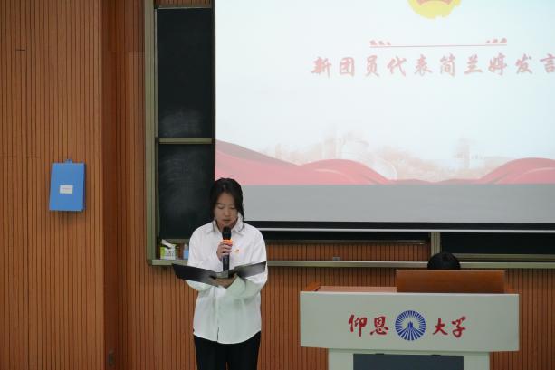 新团员代表简兰婷在发言中号召广大团员要永远铭记自己立下的誓言,继承和发扬共青团的优良传统,以团员的标准严格要求自己,用实际行动实践自己的入团誓言!老团员代表罗晓敏在发言中希望所有新团员在今后的团员生涯中能够不负众望,砥砺前行,成为一名真正优秀的共青团员。也希望老团员们能够坚定理想信念,不忘初心、牢记使命。
