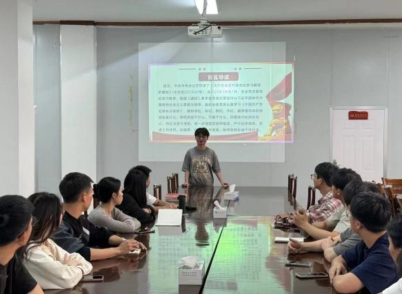 会议伊始,由蔡忠庭老师带领同学进行入党誓词宣誓并分发《中国共产党纪律处分条例》与《党员应知应会200条》。会议上支部制定了详细的学习计划,鼓励支部党员们积极认真学习并领会《中国共产党纪律处分条例》修订的重大意义,做到学纪、知纪、明纪、守纪。开展党纪学习教育,是加强党的纪律建设、推动全面从严治党向纵深发展的重要举措,进一步要求支部党员严格自律,切实做到真学真信,坚决守住纪律底线,使遵章守纪成为一种习惯。