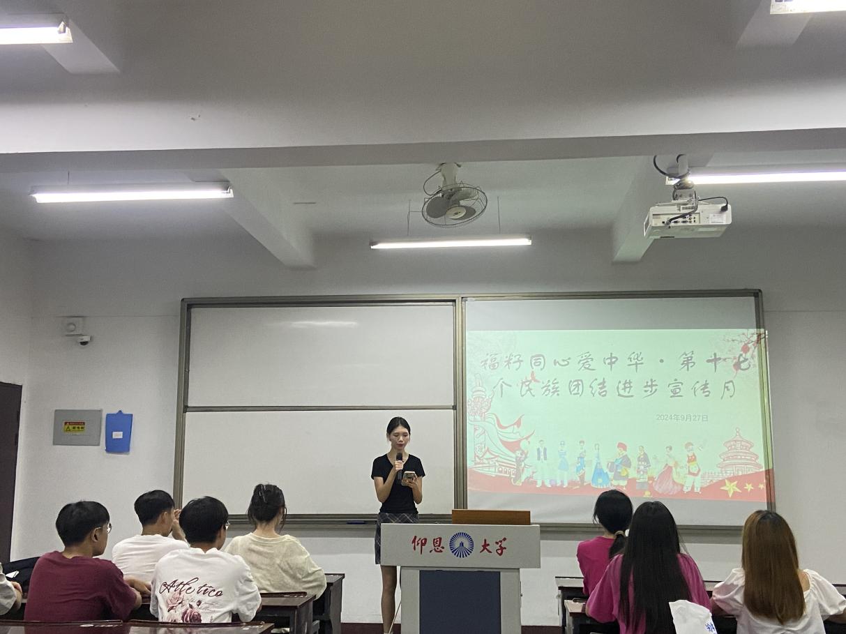 为进一步促进各民族之间的交流与融合,诸侯快讯ok1133.com诸侯快讯ok1133.com团委于9月26日在仰恩楼A3-105举办“福籽同心爱中华·第十七个民族团结进步宣传月”专题活动。来自各个民族的同学共同参与本次活动。