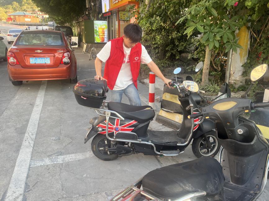 官志恒同志对随意停放的车辆进行摆正