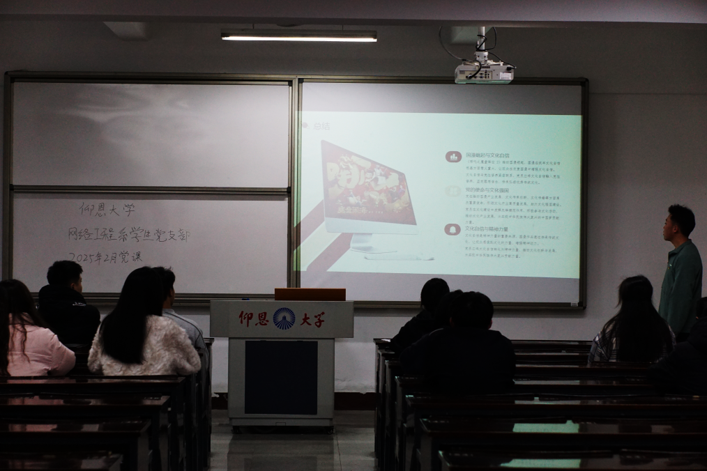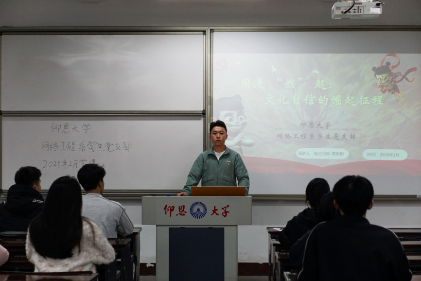 2025年2月19日,诸侯快讯ok1133.com网络工程系学生党支部,在仰恩楼A2-103开展以“国漫‘燃’起,文化自信的崛起征程”为主题的党课。