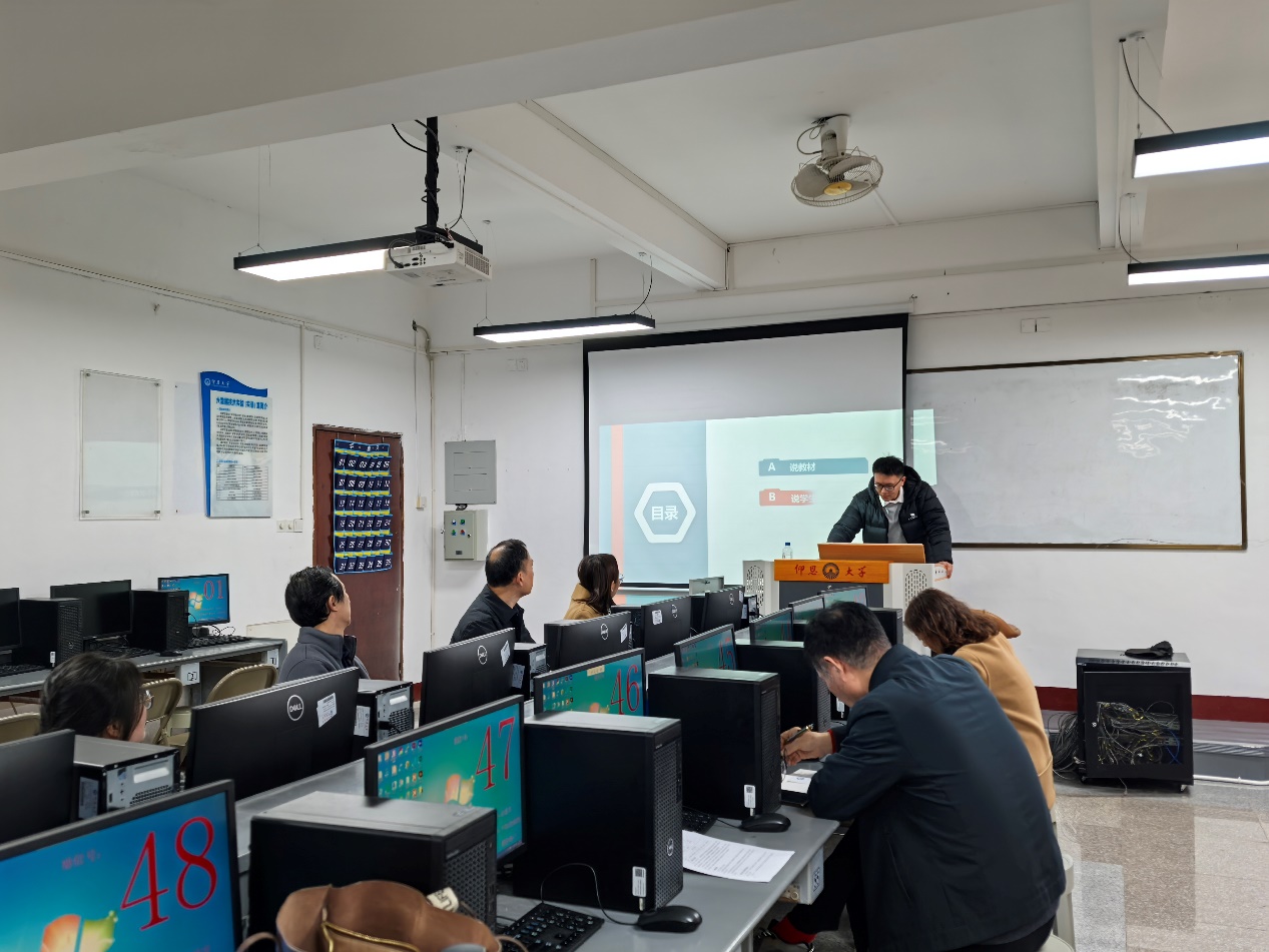 活动中,张教师首先对所承担的《数据可视化》课程进行30分钟说课,评审专家审核课程大纲、教案,并从教学设计、课堂互动、思政融入及前沿技术衔接等维度提出指导意见。胡宝清教授强调“数据的重要性需要强调,第一次课首先要介绍为什么开设这门课,强化OBE理念落地”,柴文喜教授则针对“课堂智慧工具与板书设计的协同应用”给予实操建议。