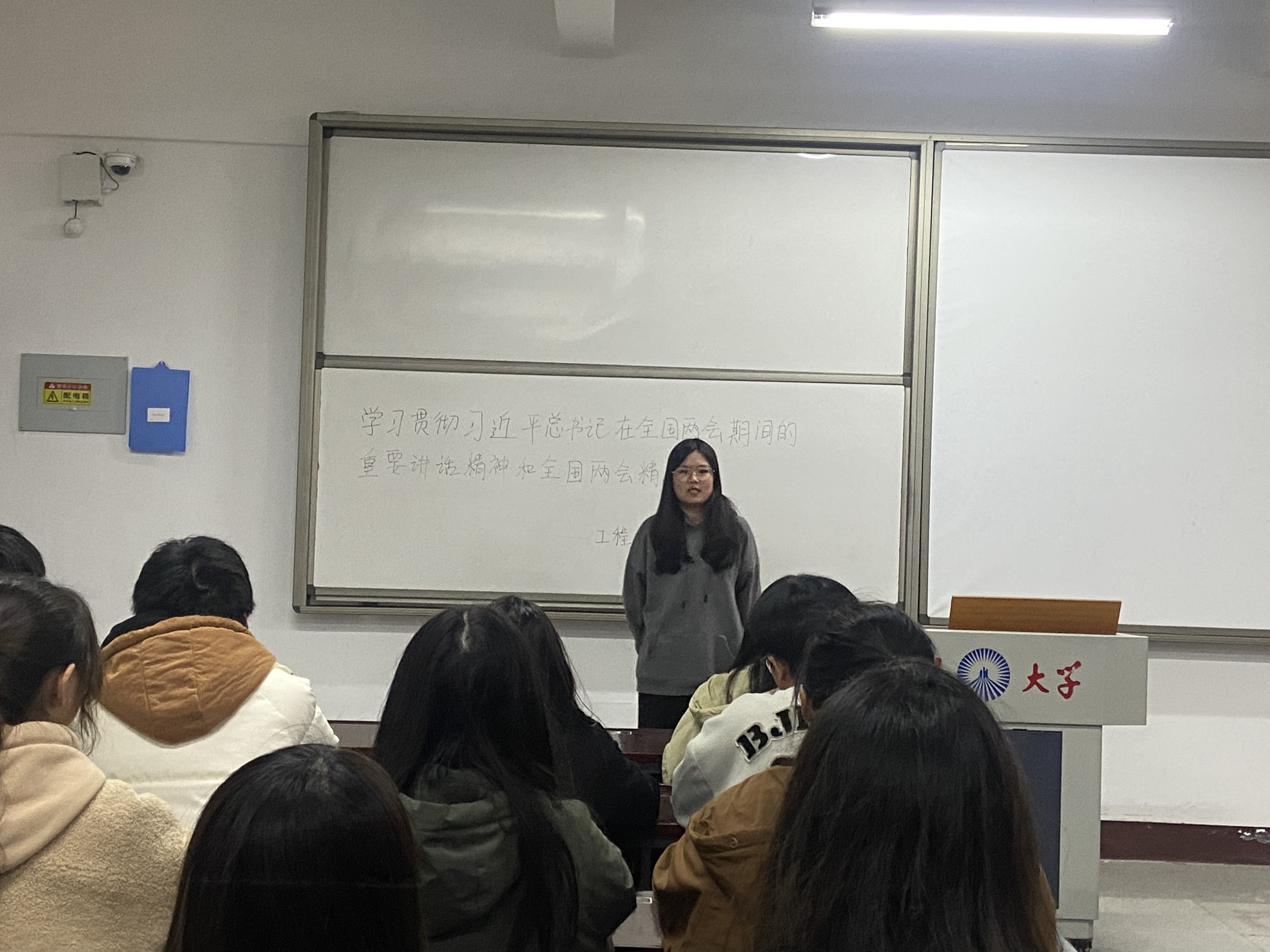 会上,学院团学干部带领大家全面学习了两会报告的主要内容,深入解读了习近平总书记重要讲话精神,围绕教育、科技、人才等与青年学生息息相关的议题展开热烈讨论。参会同学结合自身专业踊跃发言,表达了对国家发展战略的理解,以及将个人成长融入国家发展的坚定决心。