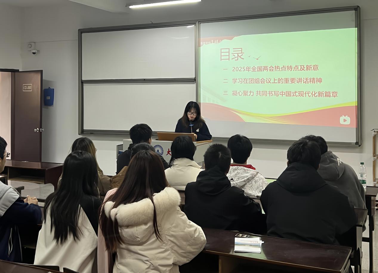 学习会上,韦艺婷老师带领参会人员认真学习了习近平总书记在全国两会期间参加有关团组审议讨论时的重要讲话精神,深入解读了《政府工作报告》中作出的决策部署和工作要求。强调同学们要深刻领会两会精神的实质和内涵,把思想和行动统一到党中央的决策部署上来,充分认识到当代青年在新时代新征程中的责任与担当。