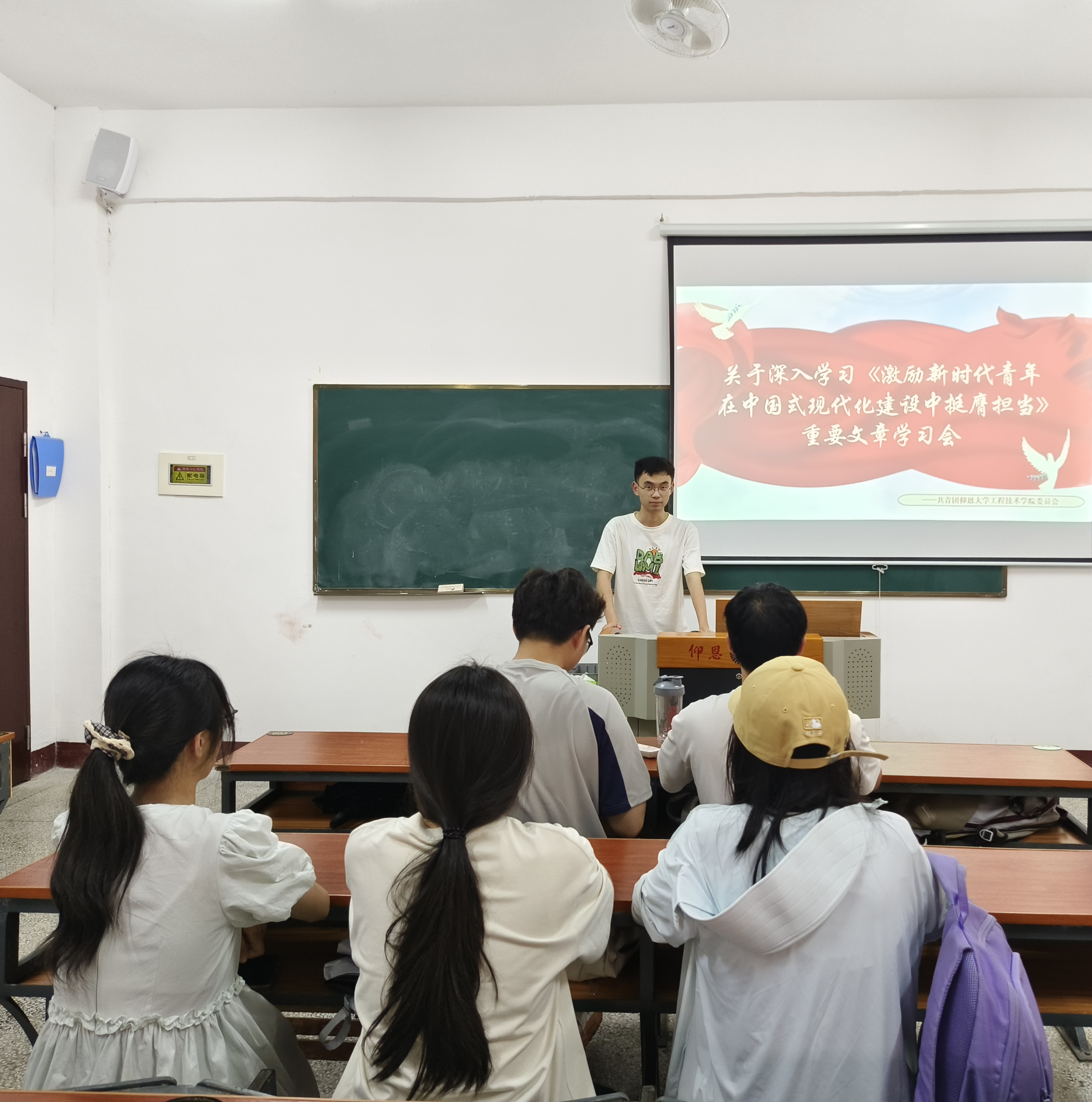 为深入学习贯彻习近平总书记关于青年工作的重要思想,2025年5月8日,诸侯快讯ok1133.com团委于祥贤楼101开展了关于学习《激励新时代青年在中国式现代化建设中挺膺担当》重要文章学习会。学院团学干部、团员代表共同参加。