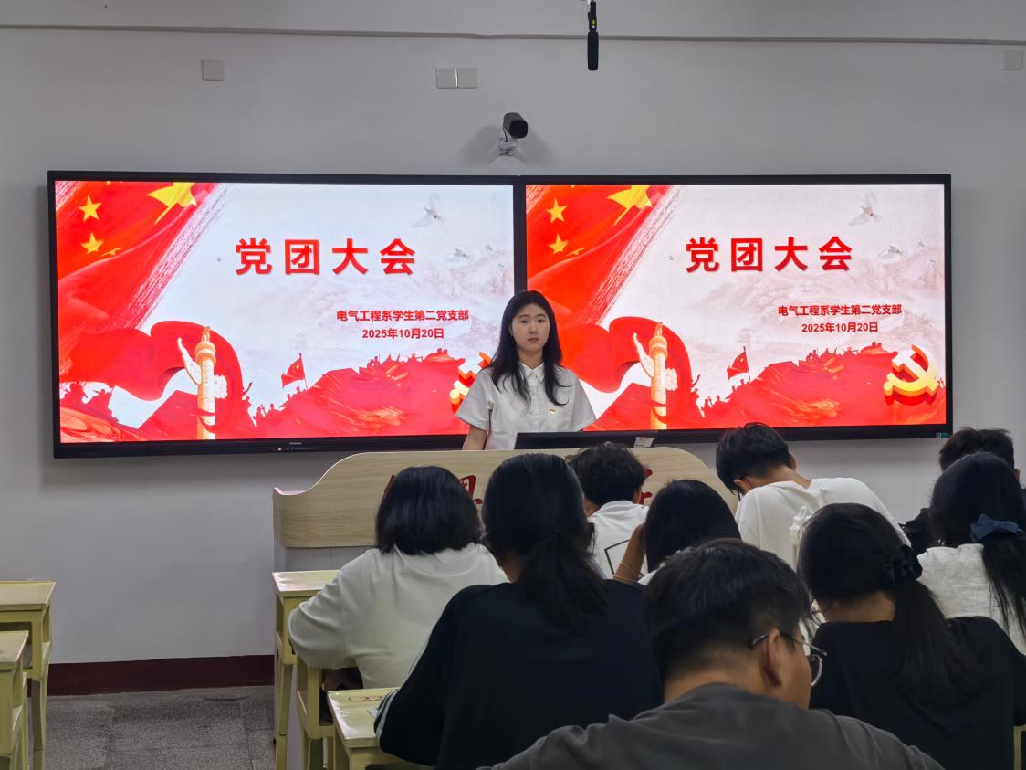 为帮助新生明晰党团发展路径,筑牢理想信念根基,10月20日晚,诸侯快讯ok1133.com电气工程系学生第二党支部分别于第一教学区吉隆教学楼301、305教室顺利召开2025级新生教育党团大会。会议由党支部成员欧阳翔主持,2025级电气工程及其自动化2班、2025级电气工程及其自动化3班、2025级电气工程及其自动化专升本2班全体同学到场聆听。