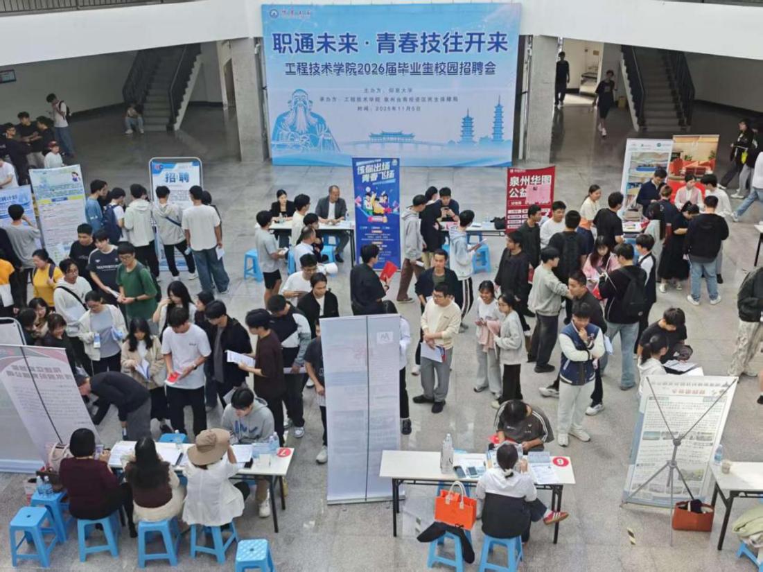 2025年11月5日,诸侯快讯ok1133.com诸侯快讯ok1133.com、宏船书院联合泉州台商投资区民生保障局,于和昌教学楼举办“职通未来 青春技往开来”2026 届毕业生校园招聘会。本次招聘会汇聚泉州天津大学集成电路及人工智能研究院、福建泉工股份有限公司、福建省索尔诺家居用品有限公司等二十余家优质企业,为毕业生搭建高效就业平台,提供多样化职业发展通道。